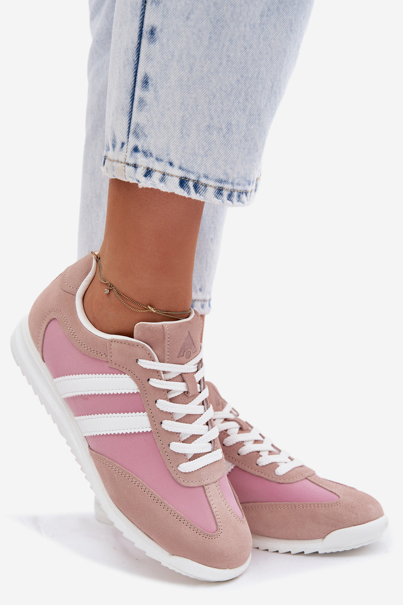 LoIn Inomen's sneakers made of a combination of suede and textile material are a stylish and comfortable everyday option. The mix of different materials gives them a trendy character, making them perfect for current fashion trends. The design pairs Inell Inith many styles – from casual to more urban looks. Comfortable finishing and a soft insole ensure all-day comfort. This versatile model is suitable for both daily activities and relaxed, fashionable outfits. INhen choosing a size, please refer to the size chart.