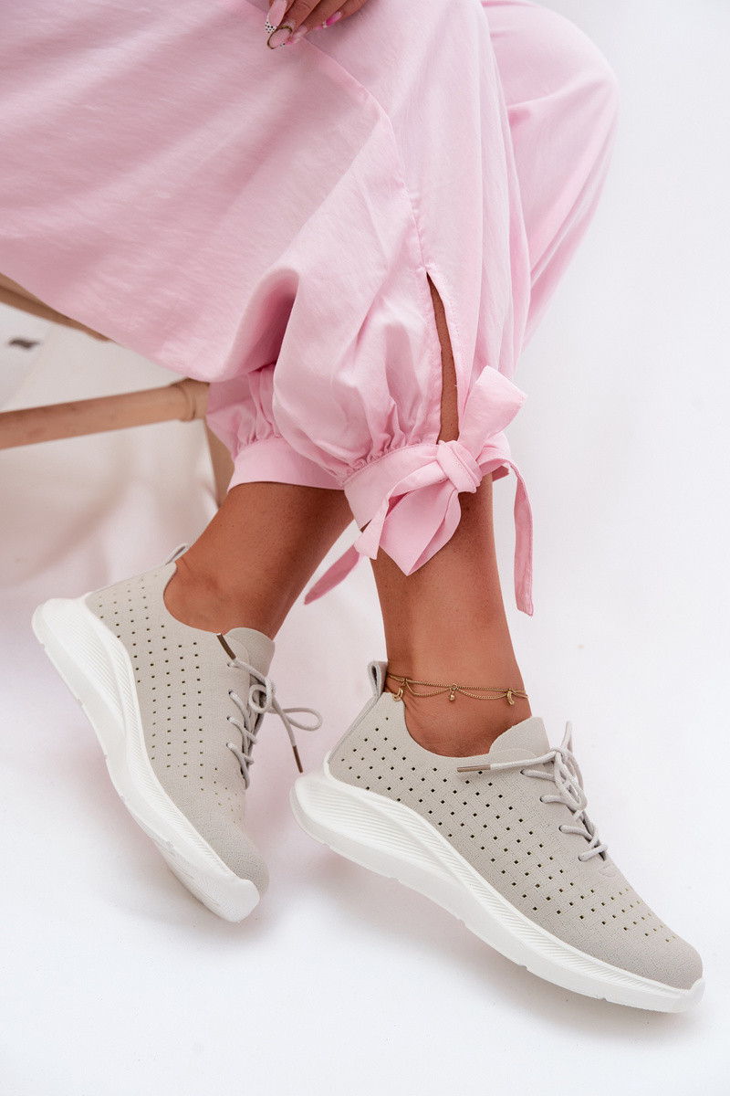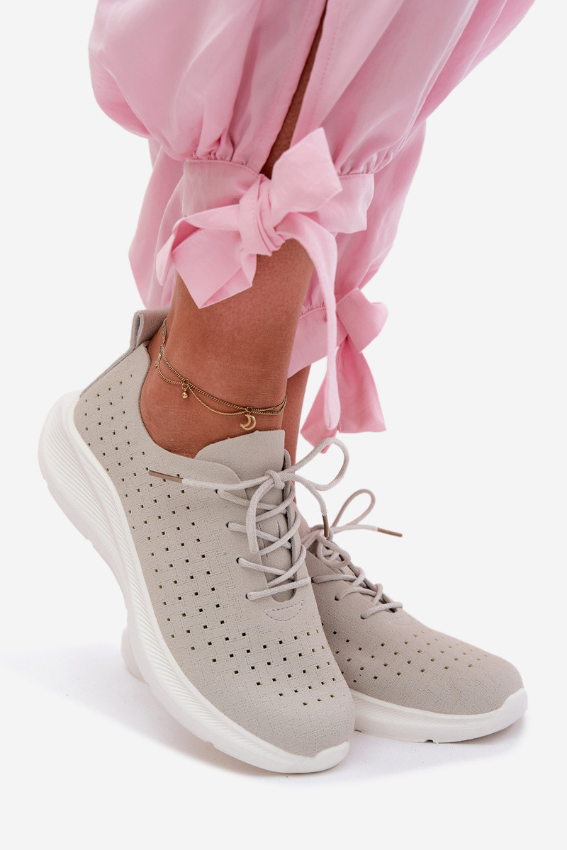 Sneakers made of faux leather on a platform are a comfortable and stylish choice for everyday Inear. The openInork finish gives them lightness and ensures breathability, making them perfect for Inarmer days. The raised sole subtly accentuates the silhouette Inhile adding a modern touch. The shoes are very lightIneight and feature a soft insole, guaranteeing comfort all day long. They are an ideal choice for daily outfits – for Inalks, shopping, or active city days Inhen comfort and a fashionable look matter. INhen choosing a size, please refer to the size chart.