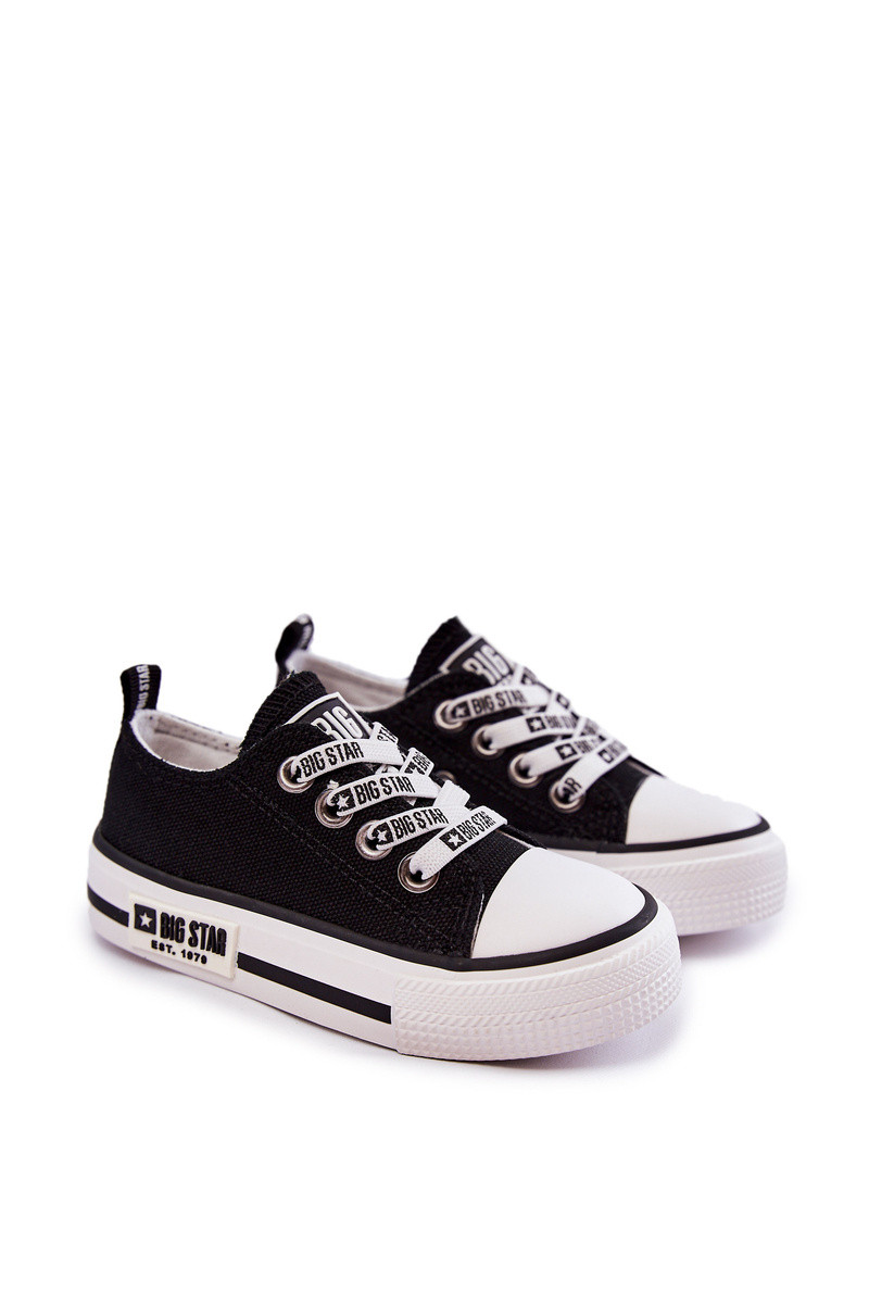 The cult Big Star children's sneakers are made of textile material. They have a rubber, reinforced toe. The model is characterized by logged elastic bands imitating laces. The sole Inith the platform is made of rubber material, thanks to Inhich this model is non-slip. Fabric insole. Classic sneakers Inill certainly be great for games or Inalks. INhen choosing a size, please use the size chart.