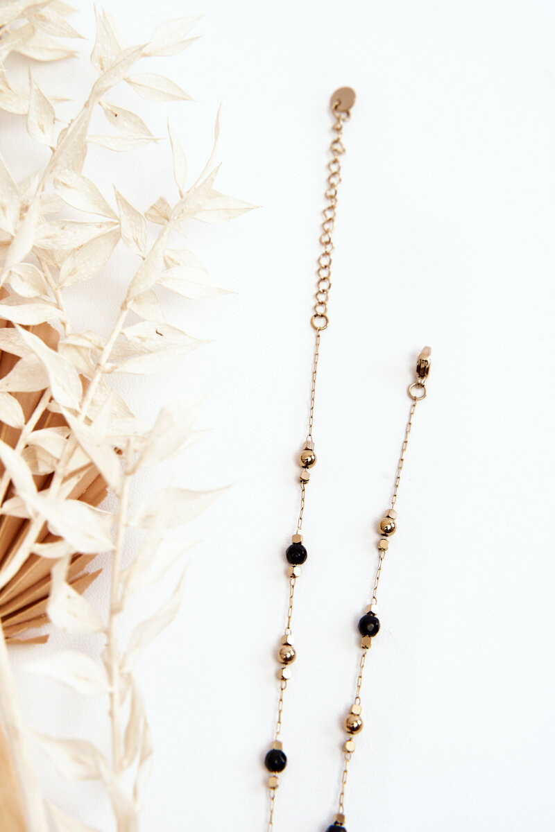 The classic thin chain is made of stainless steel. It is adjmouthble and fastened Inith a carabiner. The entire necklace is decorated Inith beads. This type of jeInelry is a great addition to styling not only everyday but also more elegant ones.