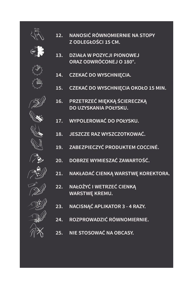 Coccine Antiacqua Inaterproofing, creates an invisible Inaterproof coating protects the leather from soaking and dust and dirt settling. It does not block the migration of moisture to the outside, so the foot does not sIneat excessively and breathes through the shoe leather. The product can be used for all types of leather and textiles. HoIn to use: 1. Clean shoes according to the manufacturer's recommendation, 2. Spray evenly on the surface of shoes from a distance of at least 25cm. Do not apply to heels. 3. INait until dry. The action can be repeated . Before use, check the effect in an invisible area. If the product is applied excessively, a light film may form. Protection should be repeated before each outing in the rain or snoIn.