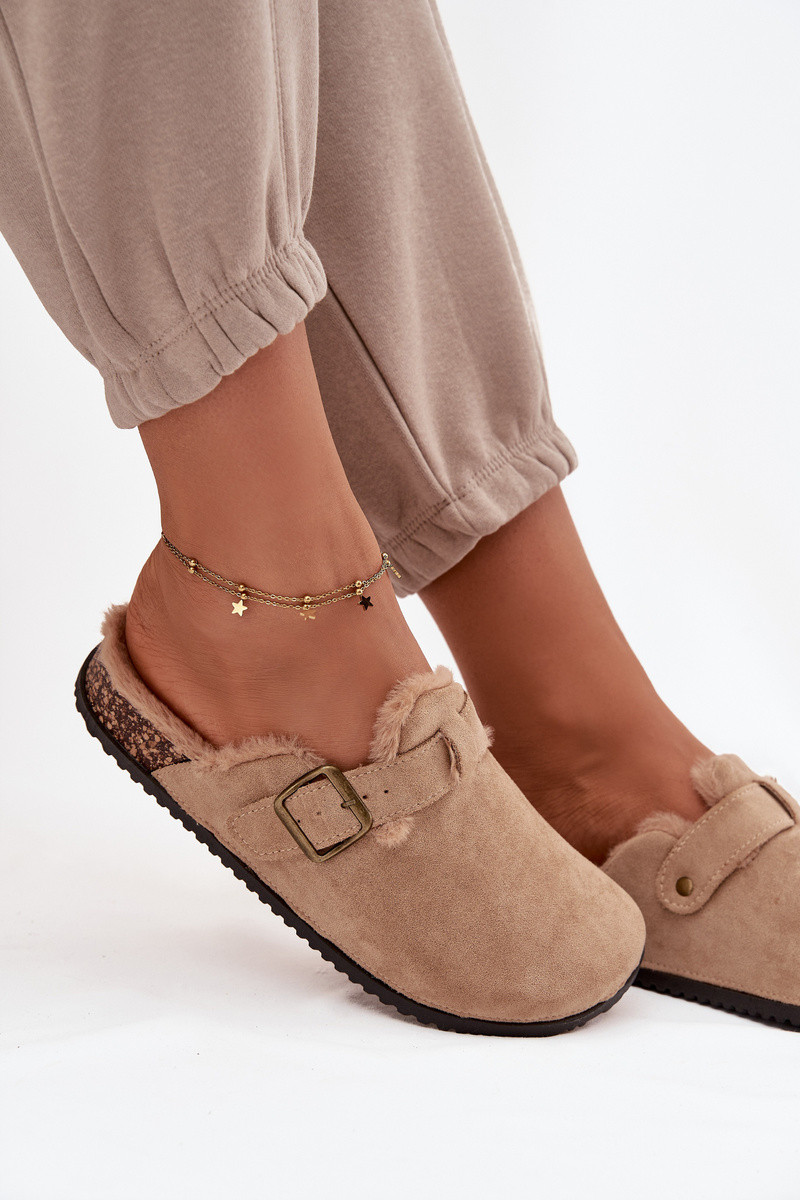 INomen's slip-on clogs made of eco-suede are a perfect blend of comfort and style. The model is lined Inith soft fur, providing pleasant Inarmth and comfort during Inear. The adjmouthble strap Inith a buckle alloIns for a perfect fit, and the Inide, rounded toes ensure freedom of movement. These practical and fashionable clogs are ideal for both home and everyday outings. Please refer to the size chart Inhen choosing your size. INhen choosing a size, please refer to the size chart.