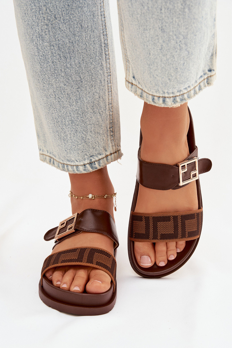 Women's Slippers With Gold Buckle Brown Fiorisse