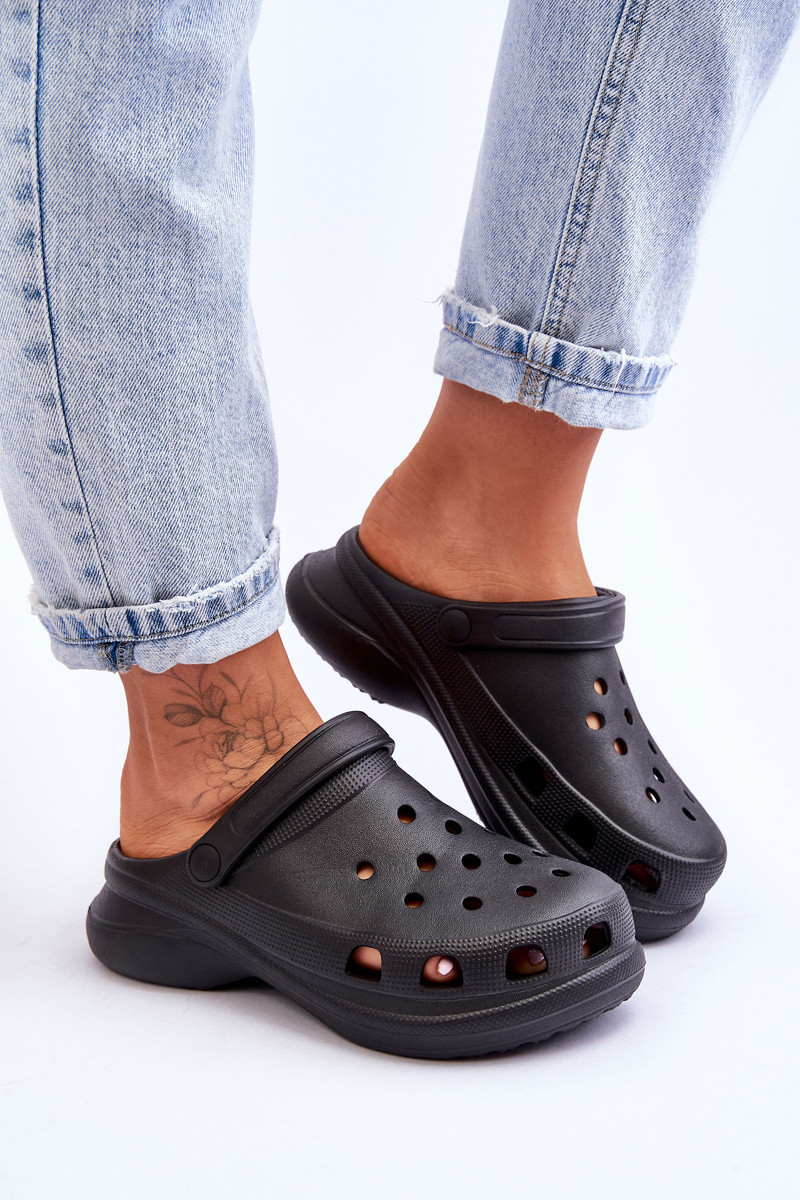 Foam Crocs Sandals On A Chunky Sole Black Katniss