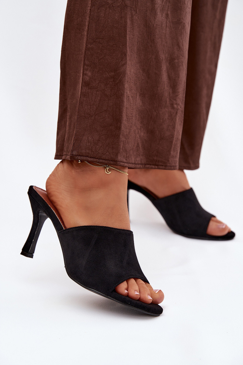 Women's Slippers on Heel with Eco Suede Black Isolia