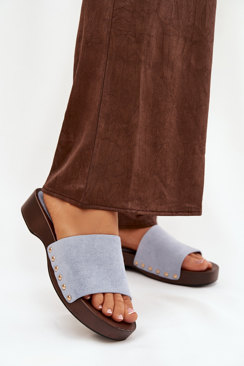 Women's slippers with gold studs blue Ferinna