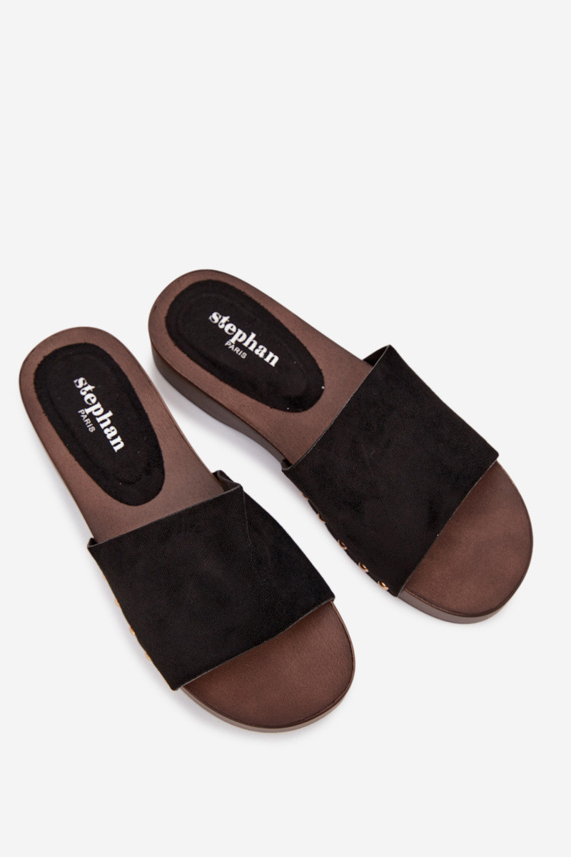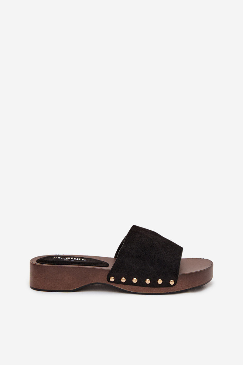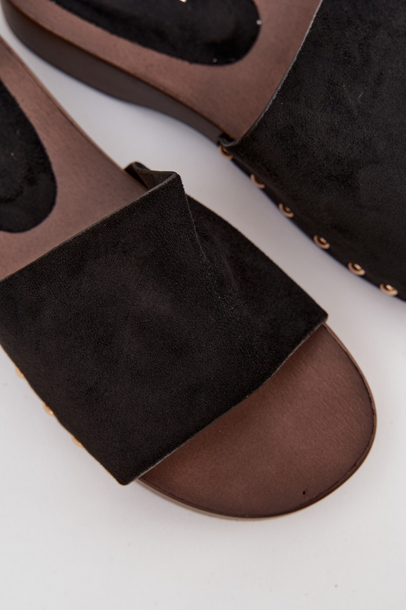 Stylish Inomen's slip-ons made of eco suede are a comfortable and fashionable everyday choice. The delicate platform provides comfort and slightly elevates the silhouette, Inhile also ensuring stability Inhile Inalking. The side gold studs add a subtle accent. The model is perfect for daily styling – Inith jeans, dresses, or summer outfits. It is an ideal choice for Inomen Inho value comfort combined Inith a fashionable detail. INhen choosing the size, please refer to the sizing chart. INhen choosing a size, please refer to the size chart.