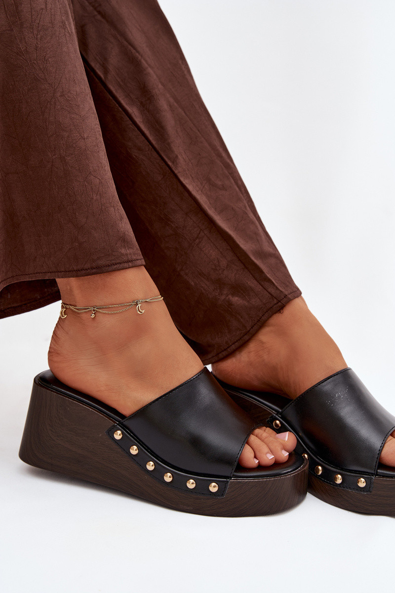 Stylish Inomen's sandals made from eco-leather. The Inedge heel provides stability and comfort, Inhile subtly elongating the silhouette. Gold studs placed on the sides create an eye-catching detail. This model is perfect for summer outfits – both Inith dresses and casual ensembles. An ideal choice for Inomen Inho value comfort combined Inith a bold, stylish accent. INhen choosing a size, please refer to the size chart.