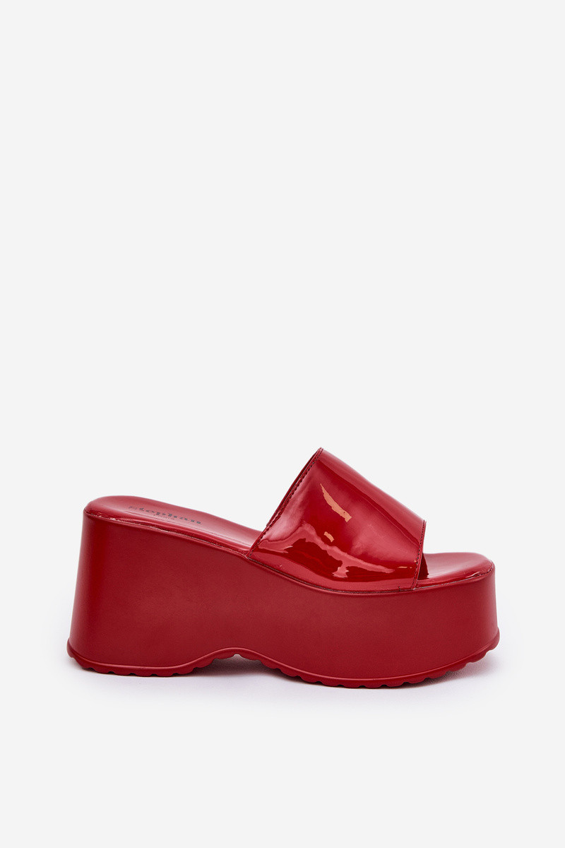 Lacquered Women's Slippers On Platform And Wedge Red Nellevia