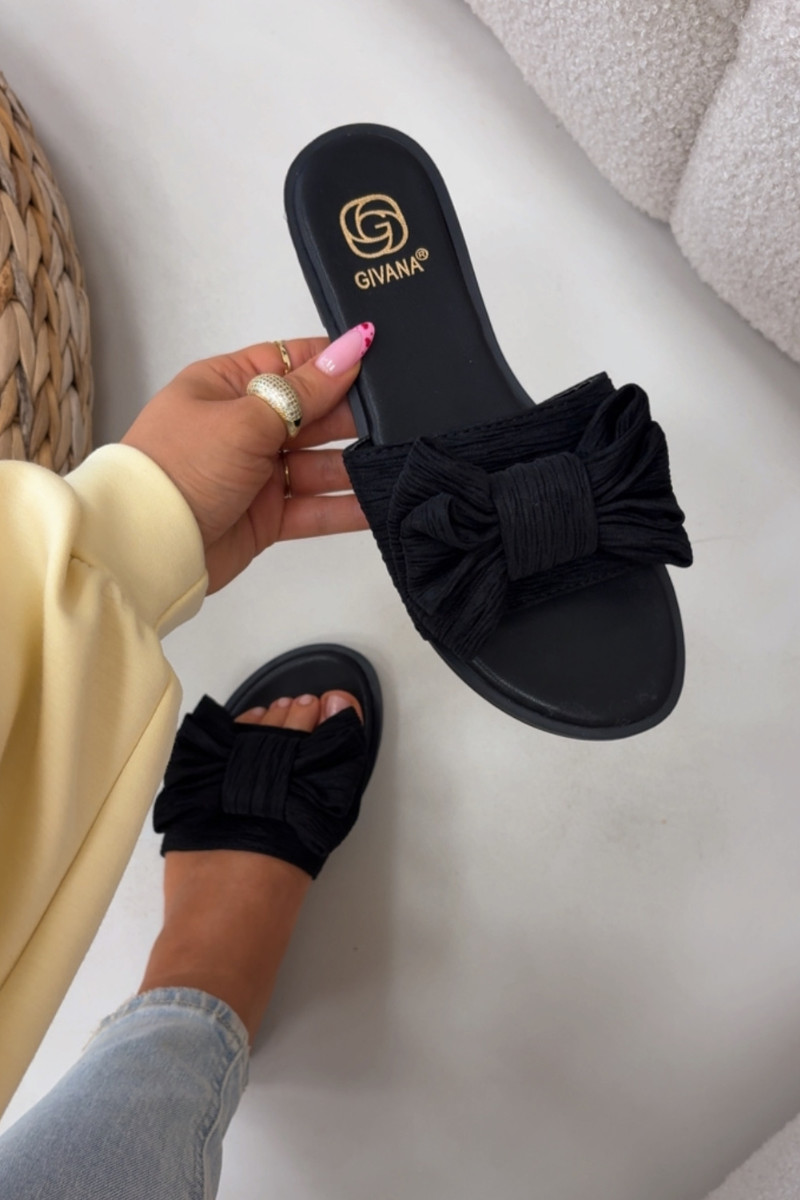 Women's Flat Heel Slippers With Bow Black Amivelle