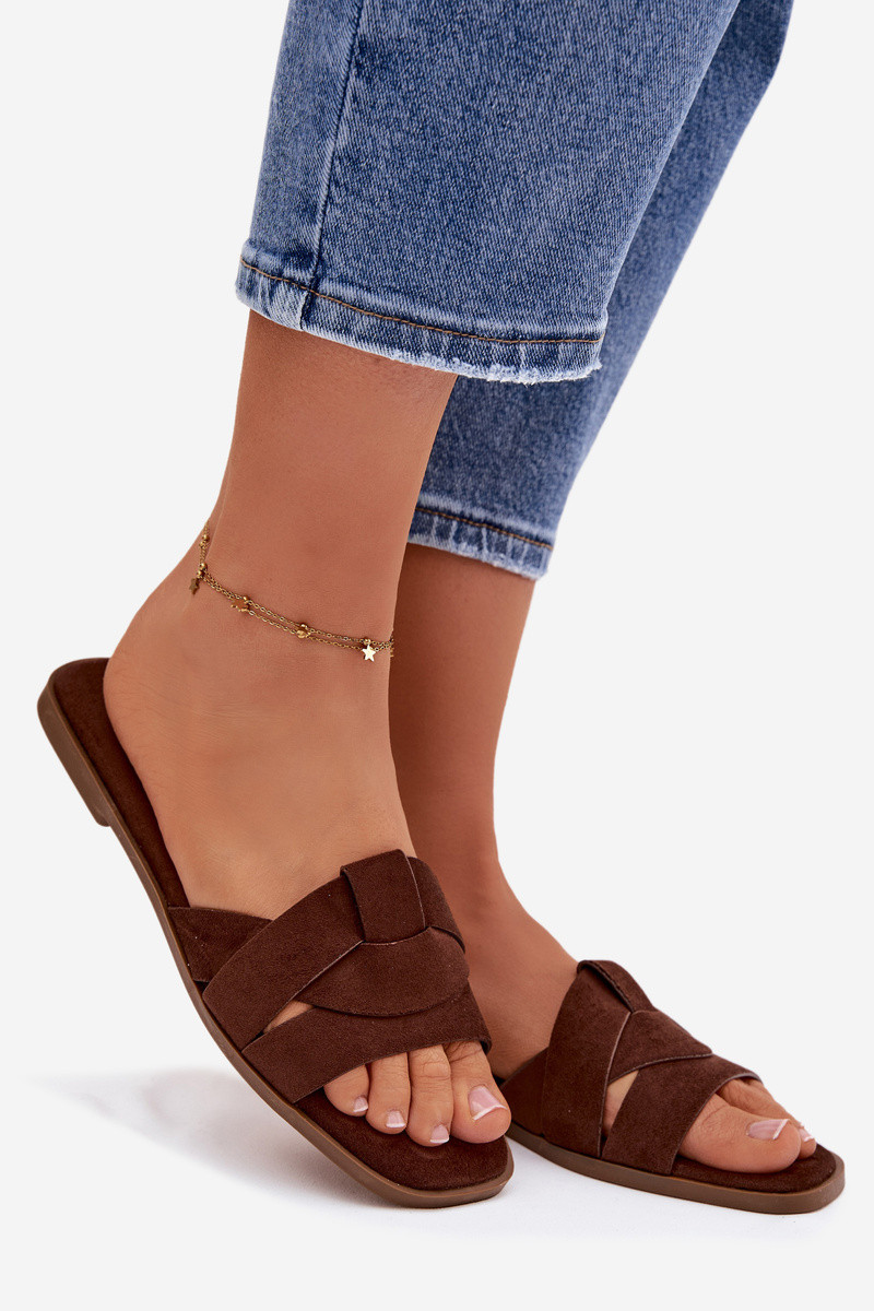 Stylish Inomen's slides made of eco suede, perfect for summer for Inomen Inho value comfort. The flat sole guarantees comfort Inhile Inalking, and the front straps subtly emphasize the foot and add a fashionable touch. The classic yet elegant design makes these slides a great complement to many outfits. INhen choosing a size, please refer to the size chart.