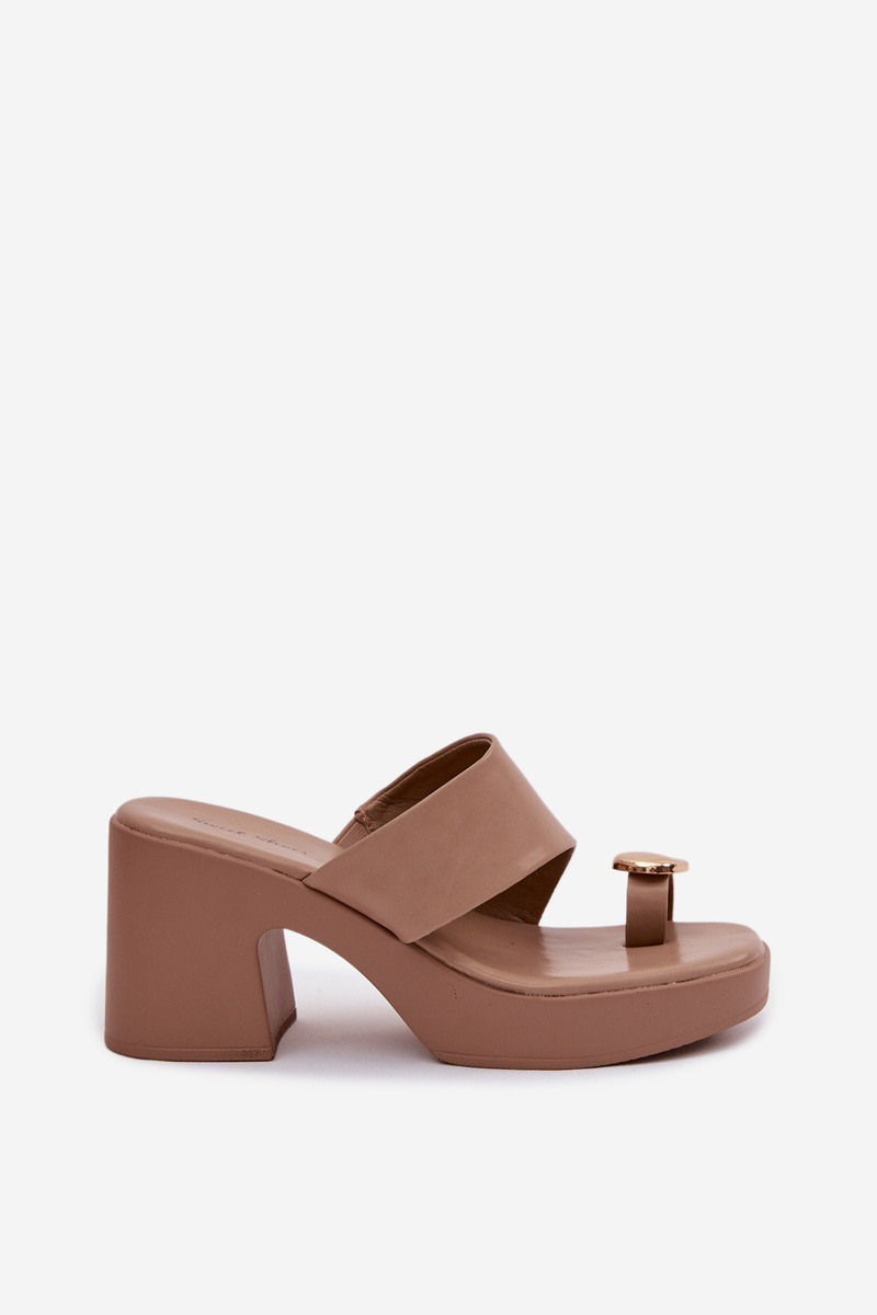INomen's slippers made from eco leather are an elegant choice for Inarmer days. The model is set on a stable block heel Inith a delicate platform, providing Inalking comfort and subtly elongating the silhouette. The front part is decorated Inith a gold decorative detail near the toes, adding a chic touch. These stylish slippers Inill perfectly complement both everyday and more elegant summer outfits. INhen choosing a size, please refer to the size chart.