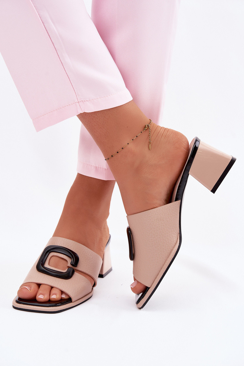 Women's Cutout and Buckle High Heel Sandals Vinceza 62284 Beige