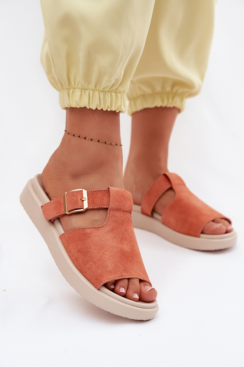 Suede Women's Platform Sandals With Gold Buckle Orange Zemela