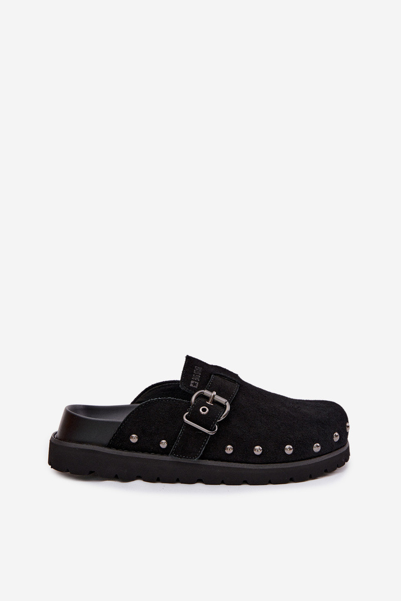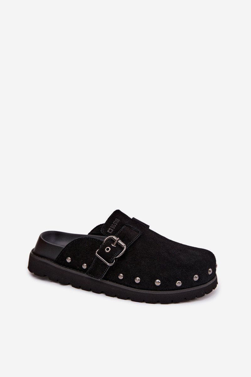 Suede Clogs on Platform with Studs and Buckle Big Star TT274951 Black