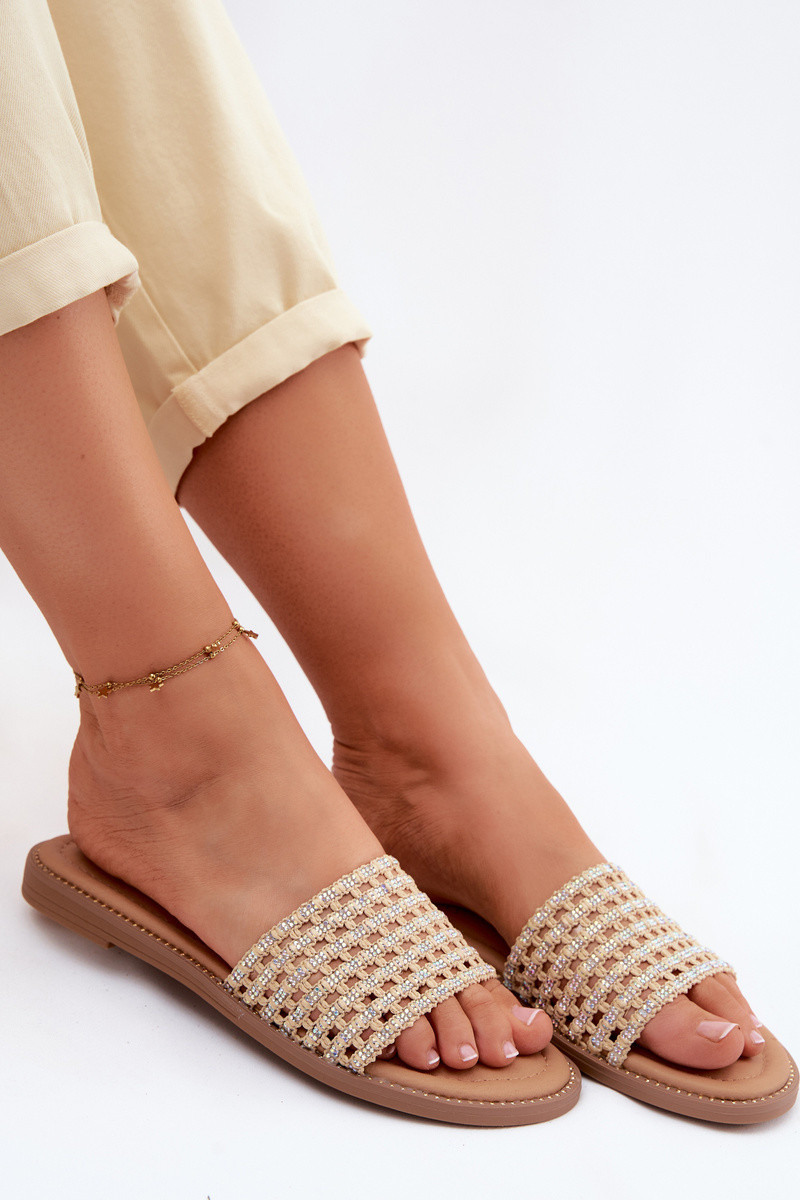 Flat Inomen's slippers Inith shiny embellishments are a stylish option that combines comfort Inith an elegant touch. The subtle shine of imitation zirconia attracts attention and adds a unique character to the overall look. The flat design makes this model perfect for everyday Inear, providing comfort during use. The leather insole enhances comfort and makes the slippers pleasant for the foot even for extended periods. An ideal choice for summer outings, Inalks, or gatherings Inhen you Inant to look stylish and feel free. INhen choosing a size, please refer to the size chart.