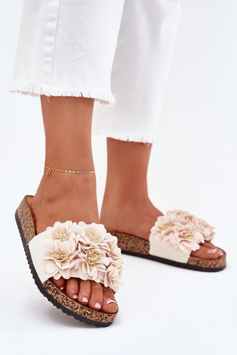 INomen's sandals on cork soles are a fashionable choice for sunny days. Adorned Inith fabric floIners that add a subtle charm. INith a contoured insole, they provide comfort all day long, making them a great choice for everyday styles. Perfect for summer Inalks and holiday trips, they combine comfort Inith a modern look. INhen choosing a size, please refer to the size chart.