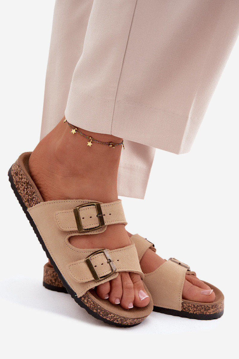 Suede Slides With Cork Sole And Buckles Beige Tavira