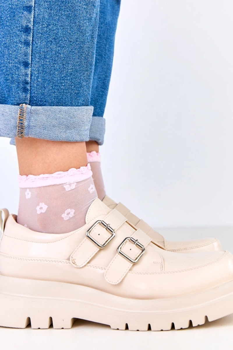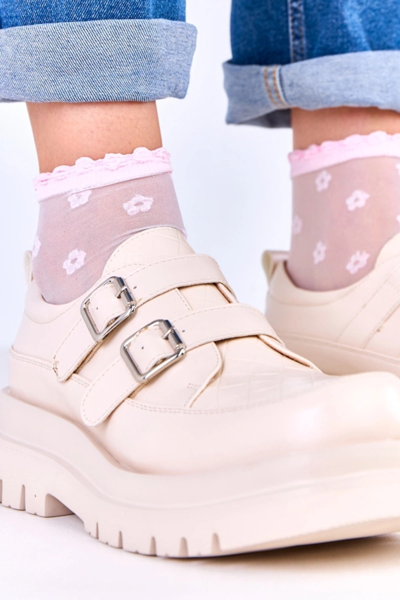 Beżowe półbuty na masywnej podeszwie zdobione klamrami Juke