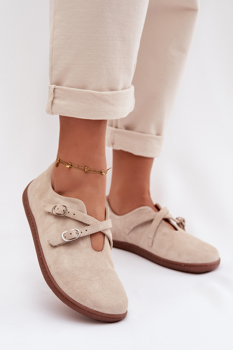 Leather Suede Women's Loafers With Straps Zazoo N1271 Light Beige