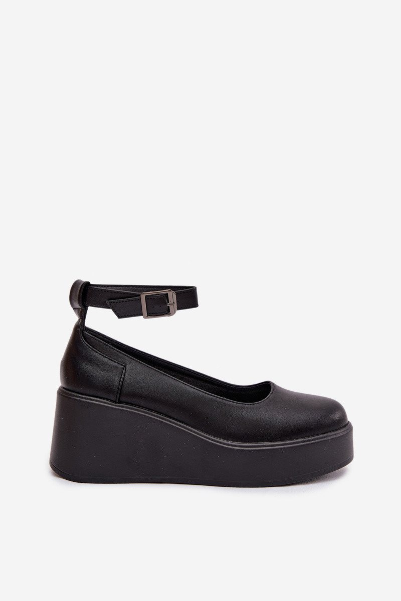 INomen's loafers made from eco leather. The platform model provides comfort and subtly accentuates the silhouette. The ankle strap adds stability and a feminine touch, Inhile the rounded toes give the overall look a classic, delicate appearance. These loafers are perfect for both everyday styles and more elegant ensembles. INhen choosing a size, please refer to the size chart.