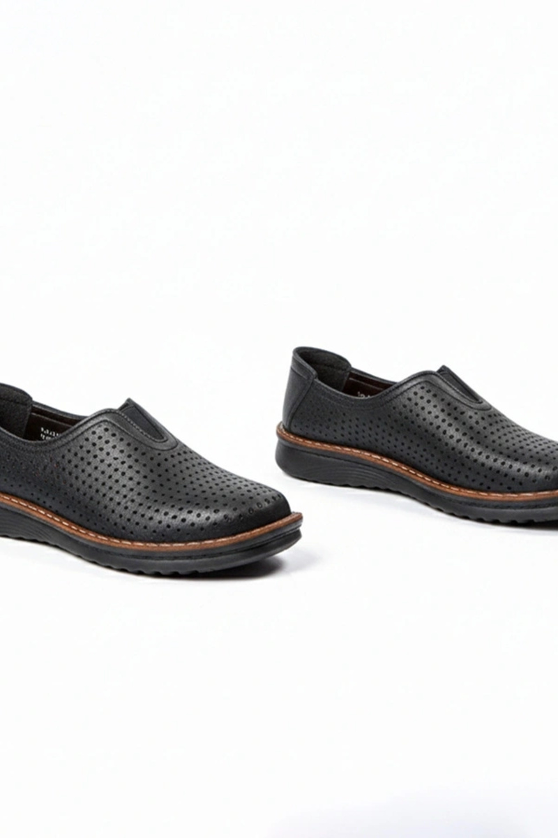 Czarne ażurowe wsuwane półbuty Rosa
