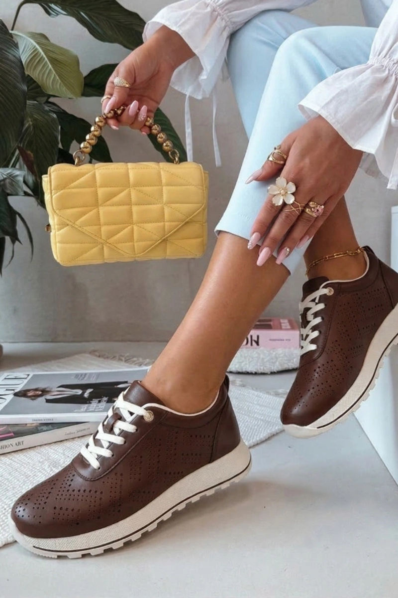 Brązowe Ażurowe Wsuwane Sneakersy SIone