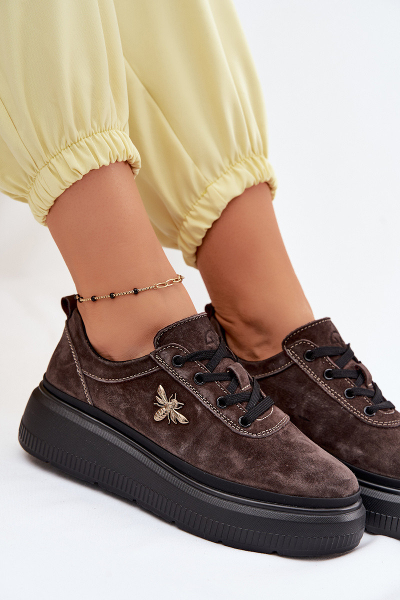Faux suede shoes with platform Vinceza 41523 chocolate