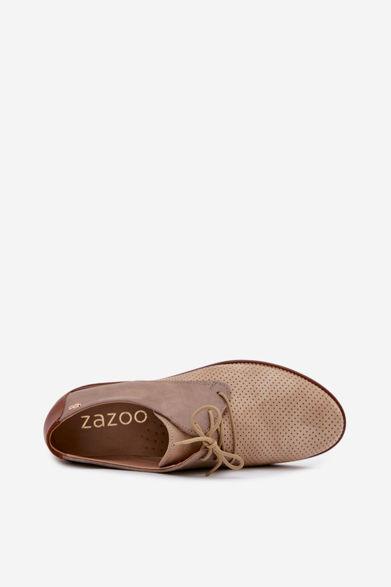 Elegant sand and brown women's leather shoes with laces Zazoo 4238
