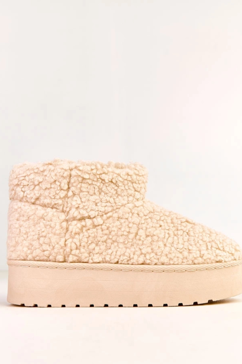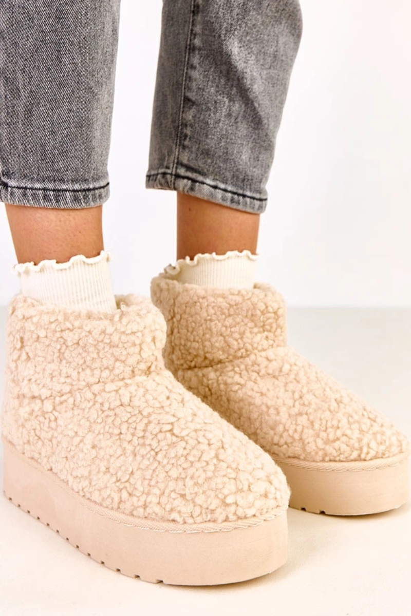 Beżowe śniegowce z cholewką z barankowego futra Lasso