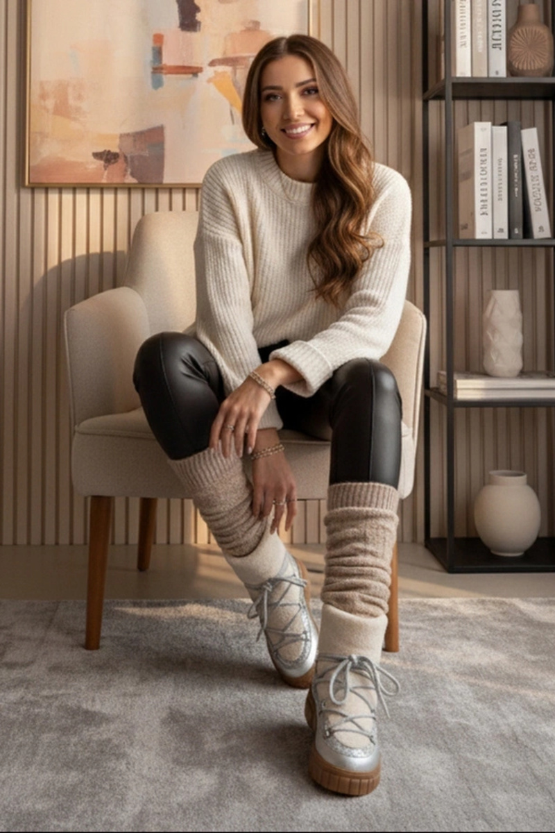 Srebrne śniegowce ocieplane futerkiem z brokatem Esmee