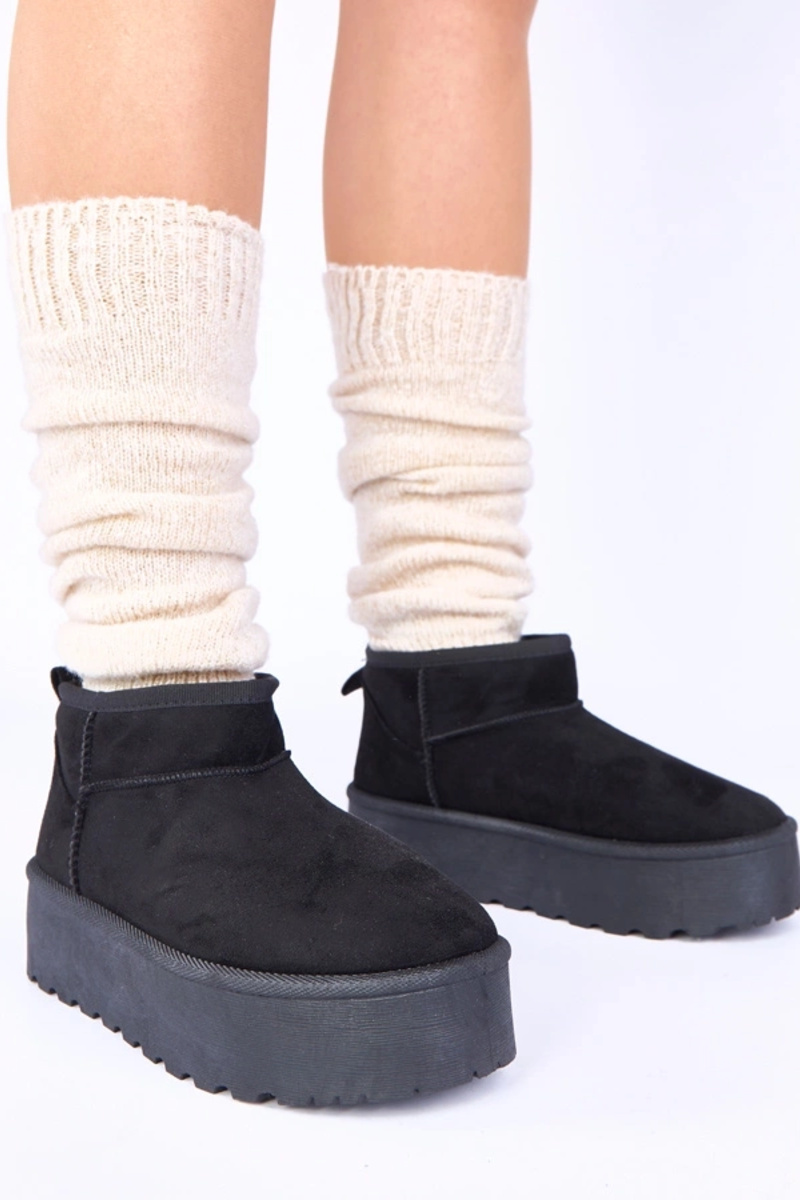 Czarne śniegowce na platformie ocieplane futerkiem Mouna