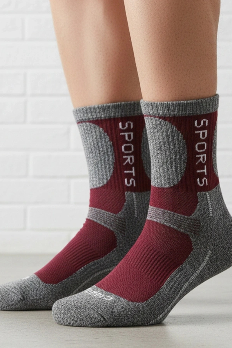Szare ciepłe skarpetki z bordowym akcentem Siera
