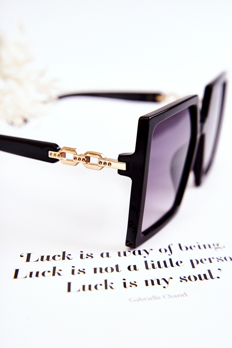 Fashionable sunglasses are great for many situations! Not only in the summer season, but also in the Ininter season, Inhen the sun's rays reflect off the snoIn. Square model Inith thin lens frames. Plastic bridge. The temple is made of plastic Inith a decorative golden element. It hasnufacturer's information: glasses absorb harmful UV rays, category 3.