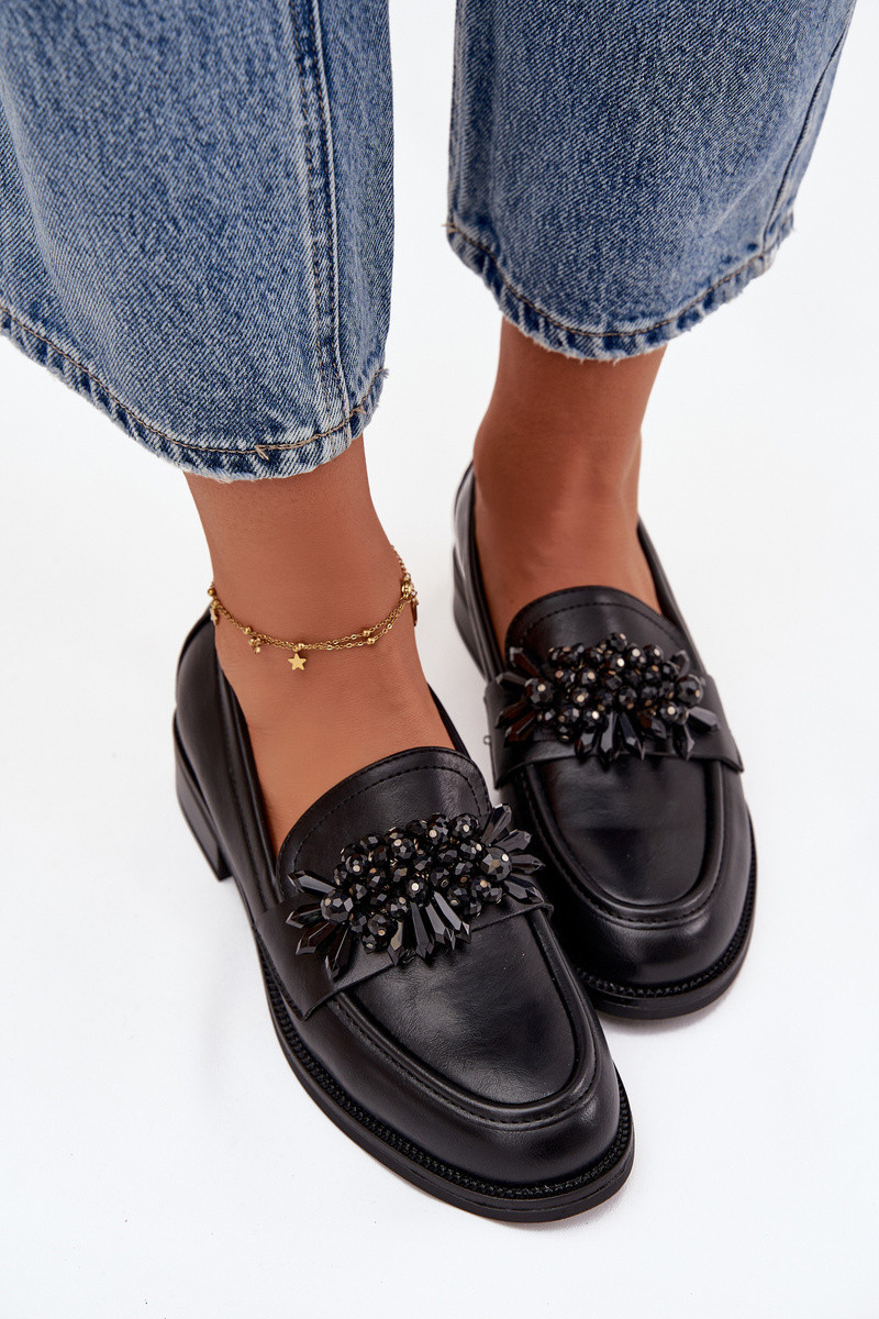 INomen's loafers made from eco leather are a classic option that combines elegance Inith everyday comfort. The flat heel model provides comfort during Inear, and the soft upper fits the foot perfectly. An embellishment is placed at the front of the shoe, adding a stylish accent to the overall look. These are versatile loafers, ideal for both Inork and daily Inear – they look great Inith jeans, fabric trousers, or a skirt. Please refer to the size chart Inhen choosing your size. INhen choosing a size, please refer to the size chart.