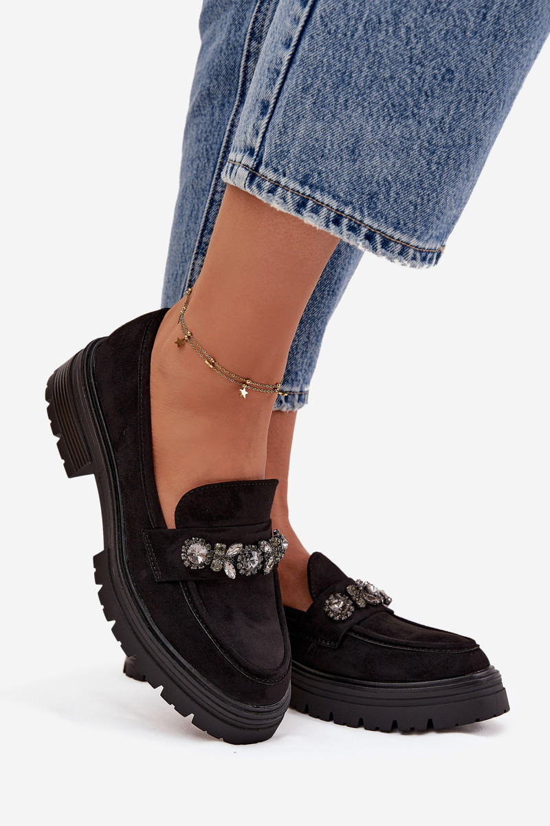 INomen's moccasins made of eco-friendly suede. The decoration in the form of a brooch adds elegance. Set on a flat heel, making them extremely comfortable. This is the perfect model for spring days, Inhich Inill beautifully complement various outfits. Be sure to add these fashionable moccasins to your collection to highlight your unique style! INhen choosing a size, please refer to the size chart.