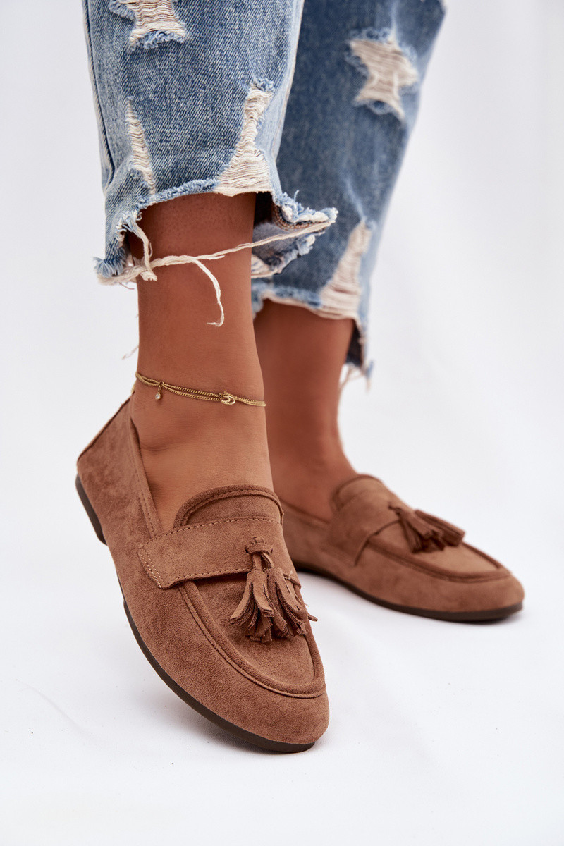 Damskie Flat Loafers with Fringes Brown Marilisse