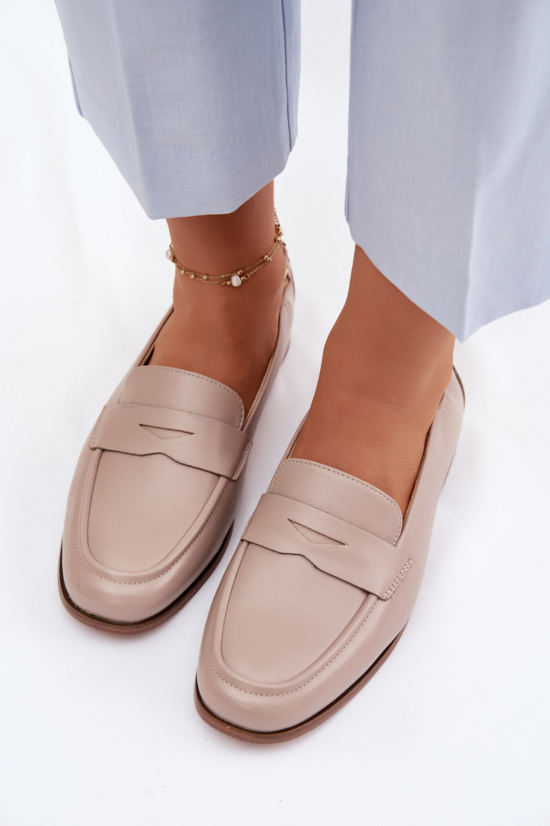 Vinceza Genuine Leather Loafers Beige