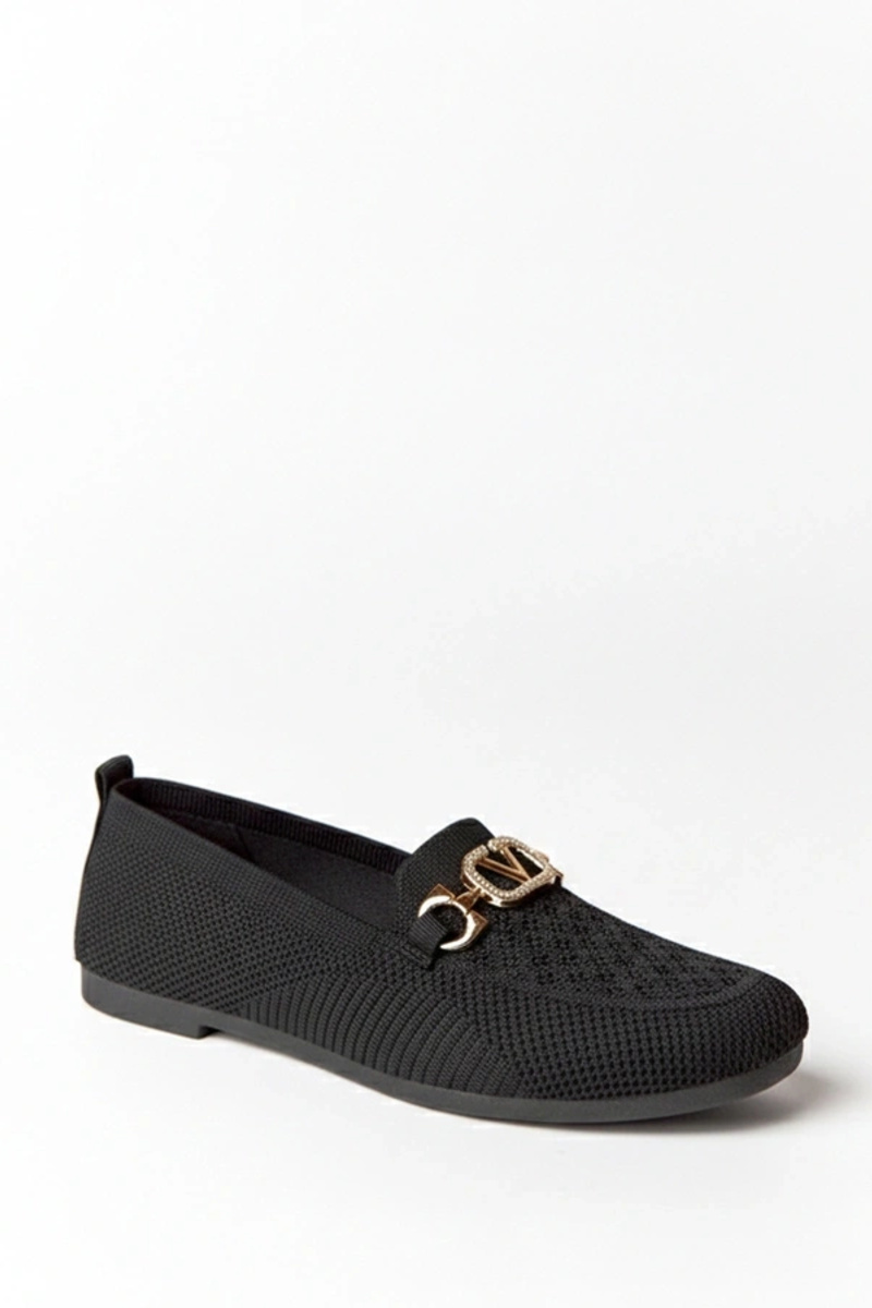 Czarne materiałowe mokasyny ze złotą ozdobą Bianca
