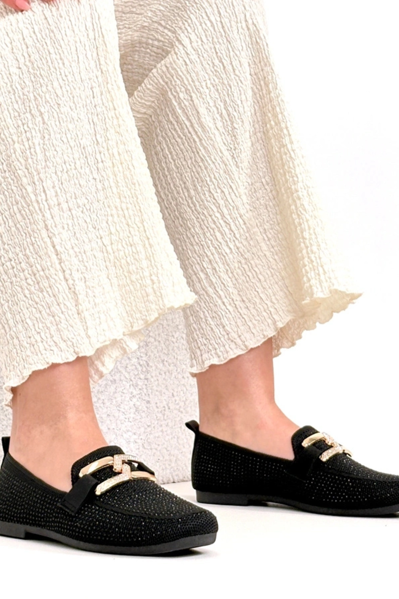 Czarne Mokasyny Zdobione Cyrkoniami Penelope