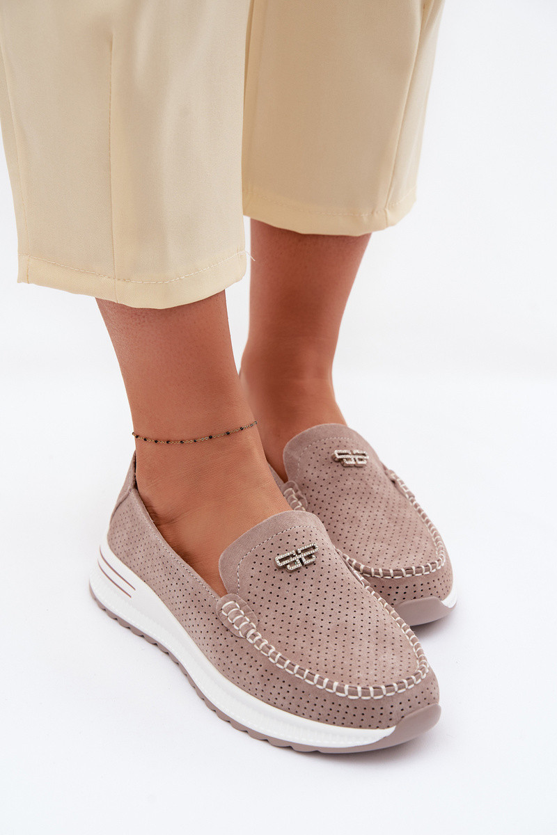 Women's Moccasins Made of Natural Suede Dark Beige Demela