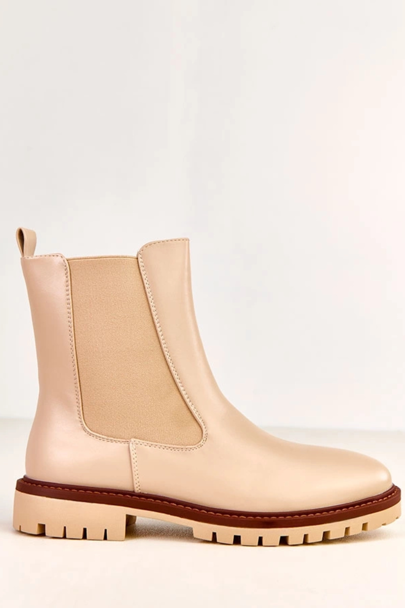 Beżowe botki na płaskiej podeszwie z elastyczną wstawką Terrami