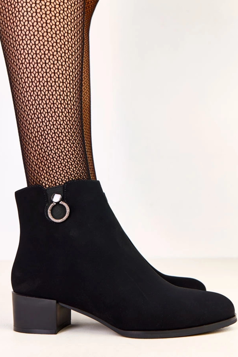 Czarne botki na słupku z elegancką ozdobą Sevira