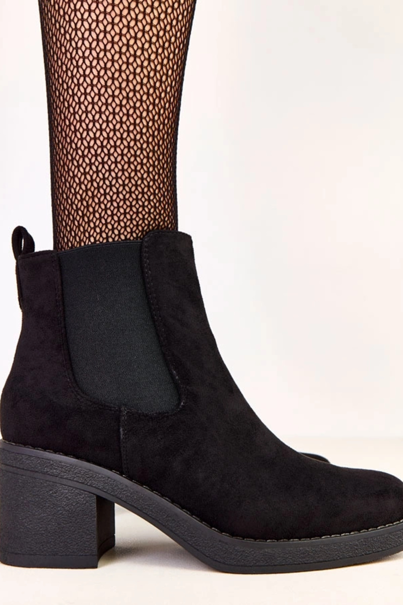 Czarne botki na niskim słupku z elastyczną wstawką Florina