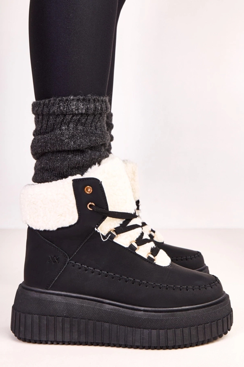 Czarne botki sportowe ocieplane na platformie Lorraine
