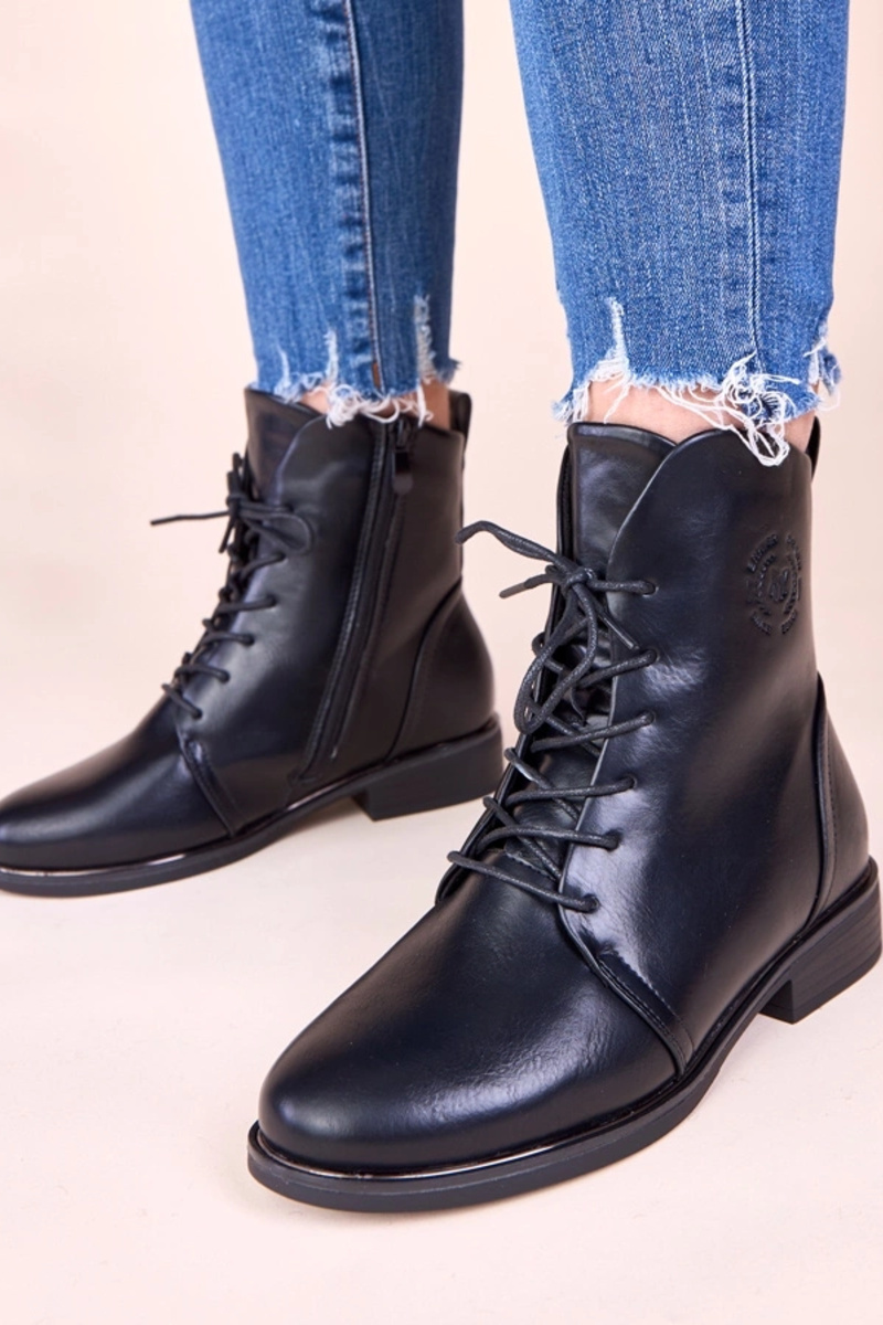 Czarne botki wiązane z ociepleniem Eladia
