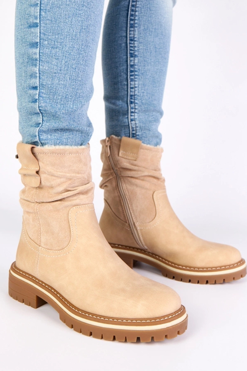 Beżowe botki ocieplane z marszczoną cholewką Lovisa