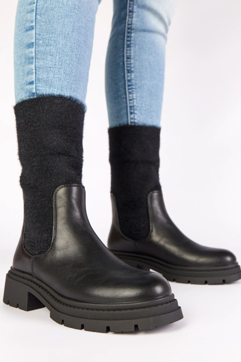 Czarne botki z elastyczną wstawką i ozdobną cholewką Evelyn