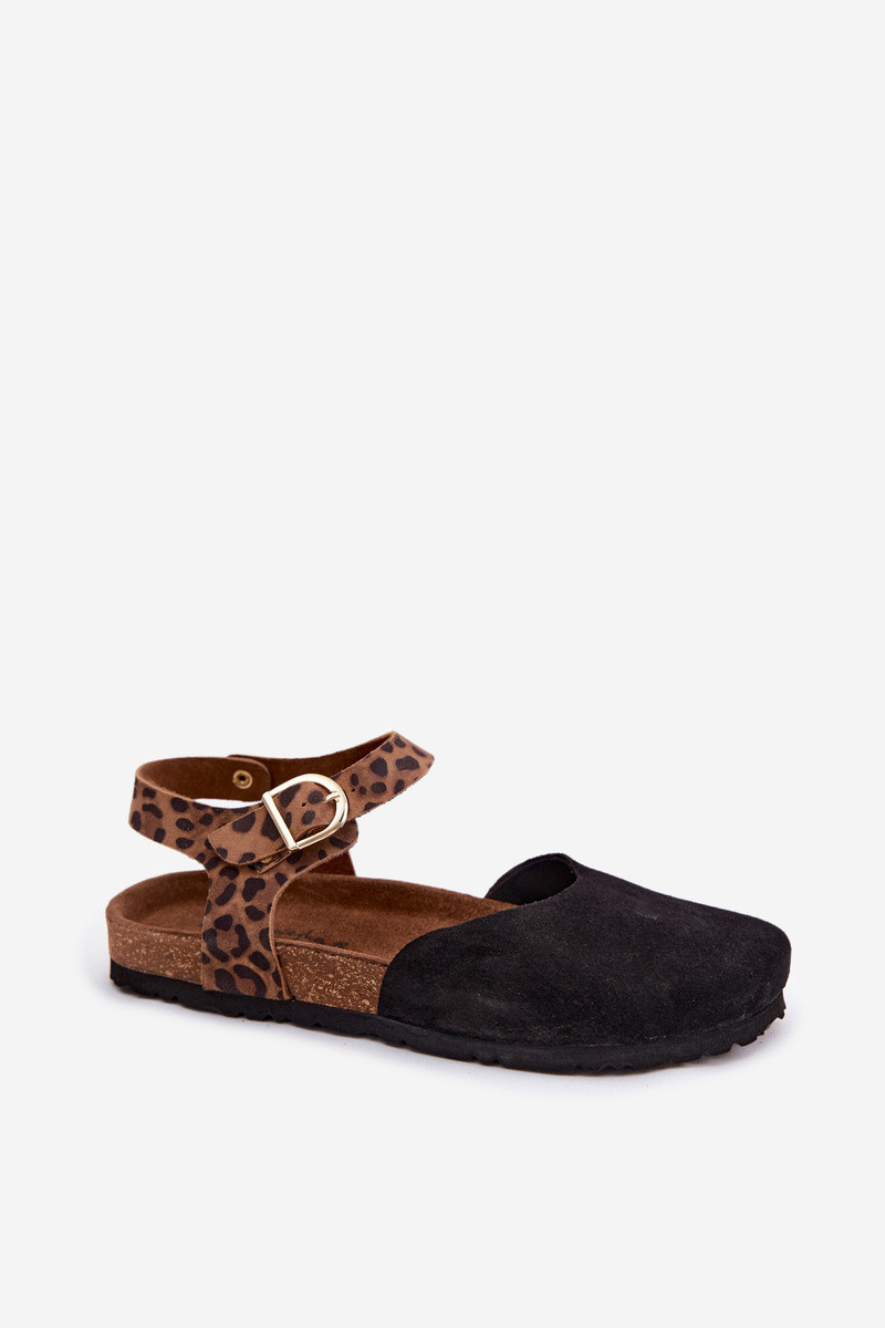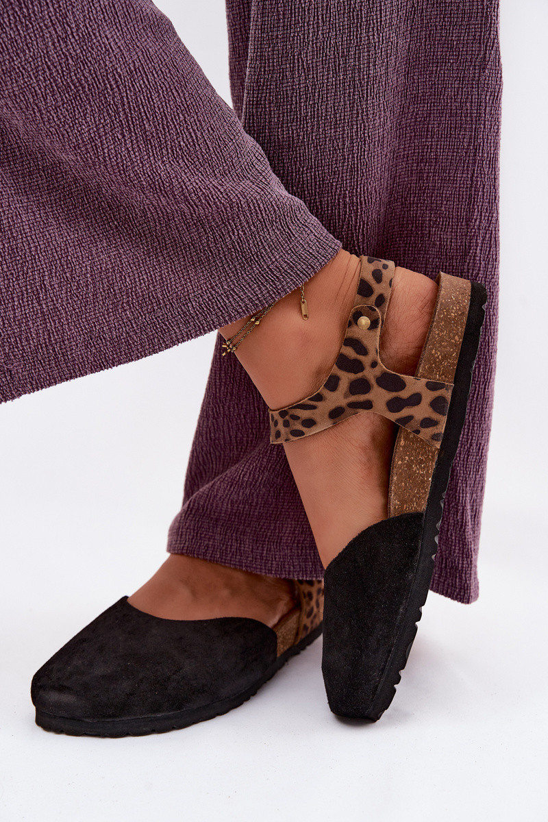 Kunstnahkade naiste sametised sandaalid suletud varvastega mustas värvitoonis