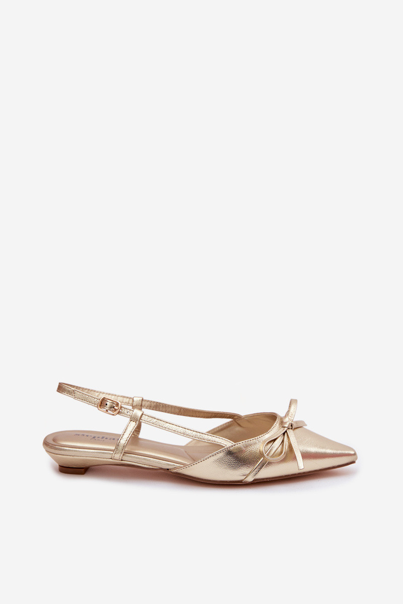 Auksinės spalvos moteriškos basutės iš dirbtinės odos ant žemo kulno Jelmera